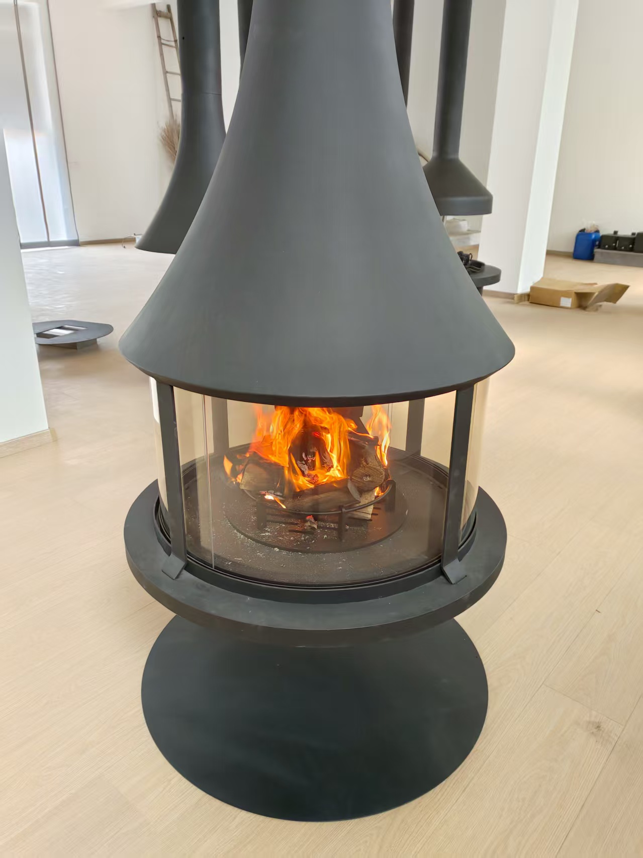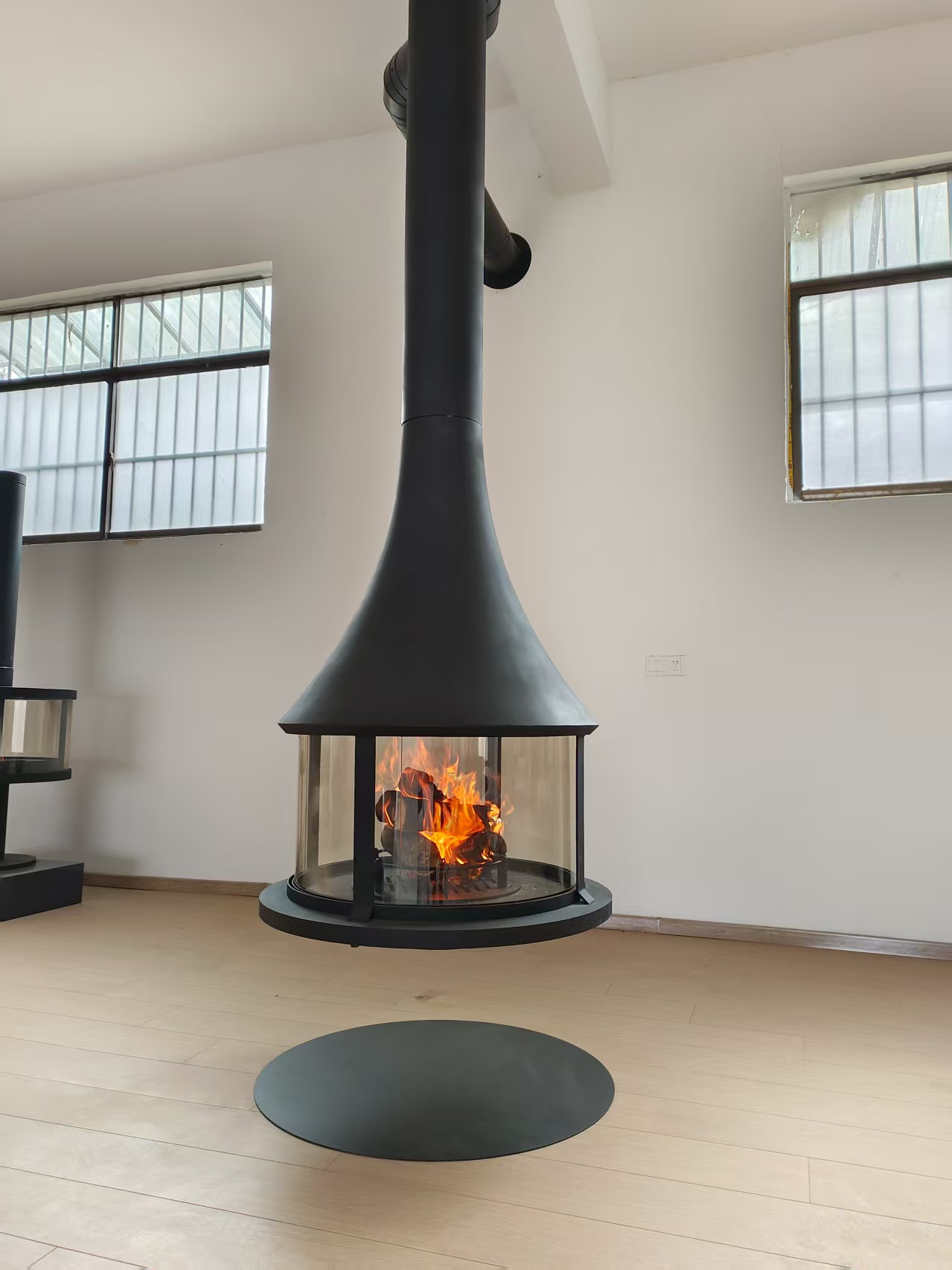 Το φλογερό χαμόγελο αυτού του τζακιού, δεν αποτυγχάνει ποτέ να τραβήξει την προσοχή. Τοποθετείται κρεμαστό από την οροφή και το χαλύβδινο σώμα του έχει έναν εντυπωσιακό μαύρο χρωματισμό. Η πρωτοποριακή του εμφάνιση και η τεράστια θερμαντική ισχύς τους διασφαλίζουν ότι θα κάνει μια δήλωση τόσο αισθητικά όσο και λειτουργικά.